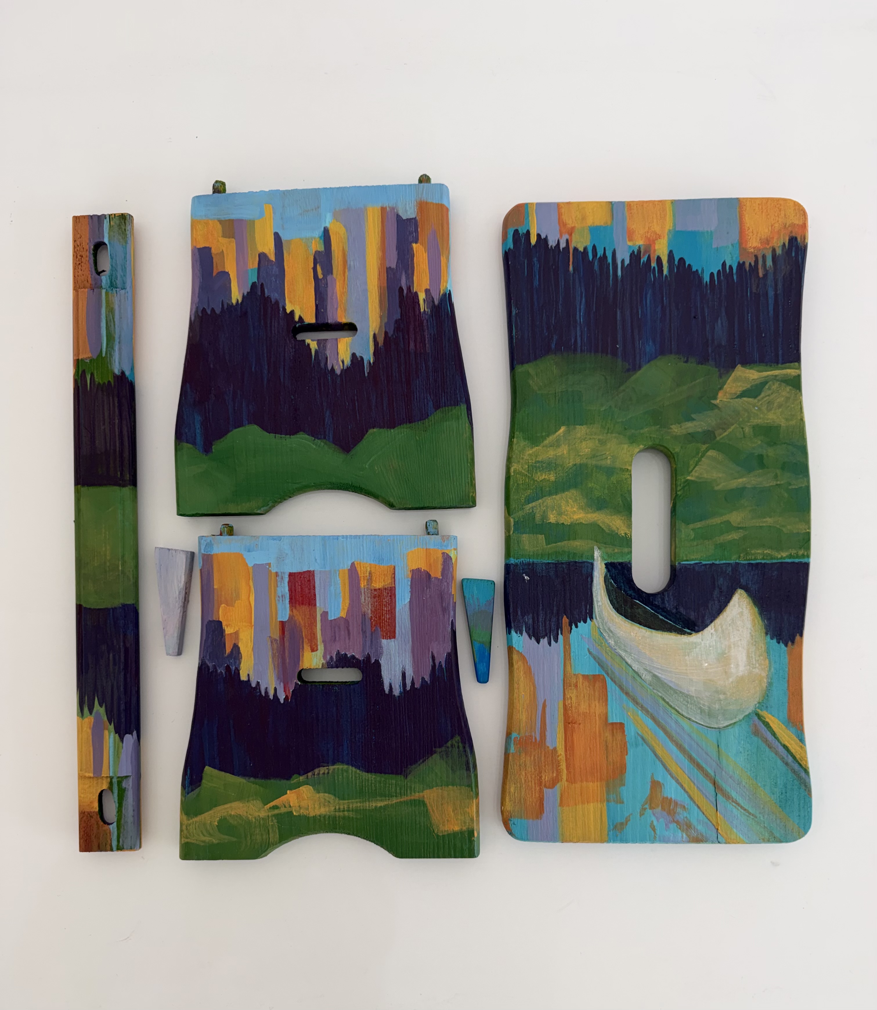 The stools make painterly reference to the cover art of the Winnetou novels: the romance of these landscapes is sustained through the erasure of human life. This perspective on nature is what helps sustain contemporary forms of the aryan Lebensraum project, and which has compromised not only my education and practice as a painter, but my ability and autonomy to move through european space without threat of violence and death.