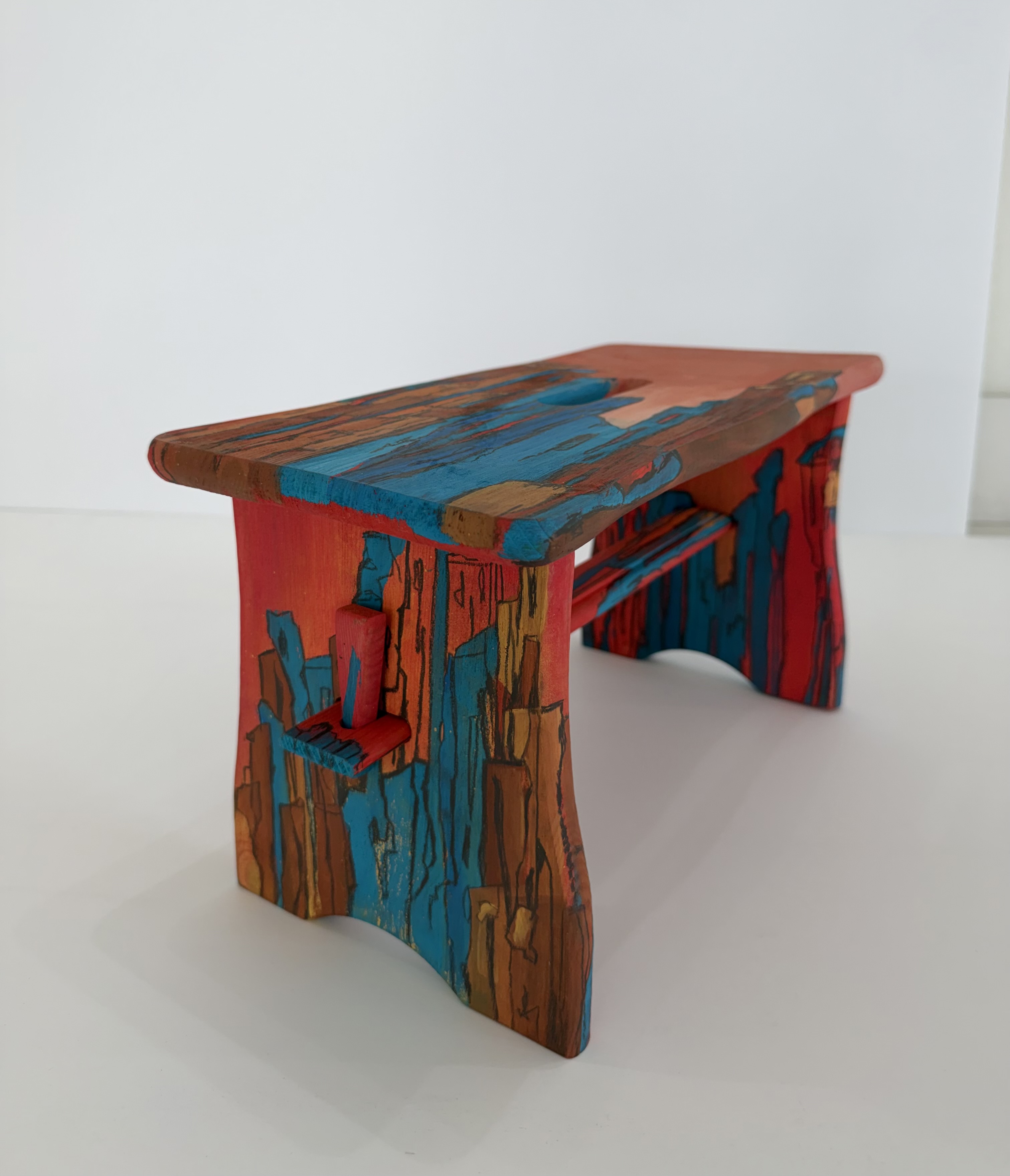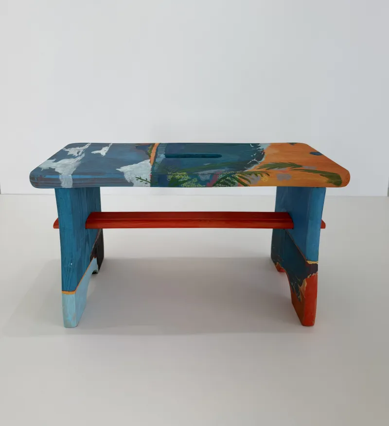 Using furniture in lieu of canvas, I play with popular national codes of domesticity like belonging, home, culture. The small stool has a clear West Indian context, long addressed by artist Christopher Cozier.